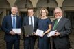 Verlängerung des Sponsor-vertrags mit Raiffeisen Salzburg. Im Bild: Thomas Heißbauer (Künstl. Leiter), Christoph Bachleitner (Raika), Josefa Hüttenbrenner (Kaufm. Leiterin), Hans Schinwald (Präsident) © Salzburger Kulturvereinigung/Neumayr
